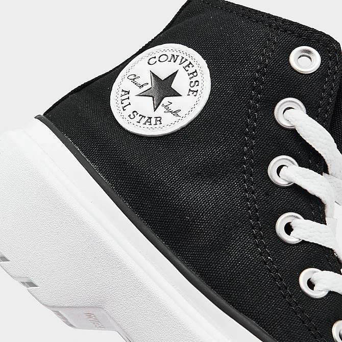Add a lot of height and tons of personality to your little one’s look when they wear the Girls’ Little Kids’ Converse Chuck Taylor All Star High Top Lugged Casual Shoes. All of the CTAS features they love like a canvas upper, patch and rubber toe cap are here, but the real star of the show is the platform midsole and lugged outsole.