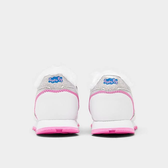 Your little one can bring her favorite Peppa Pig characters with her wherever she goes when she wears the Girls’ Toddler Reebok Peppa Pig Classic Leather Casual Shoes. Peppa and Suzy can be found on the tongues of each shoe, and the fuzzy collar is inspired by Suzy’s wool. Her favorite toy, Owly, even makes an appearance on the side panels.