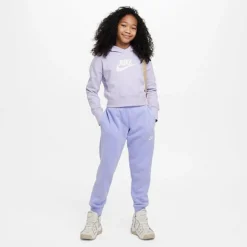 Girls’ Nike Sportswear Club French Terry Cropped Pullover Hoodie Oxygen Purple/White – DC7210 536